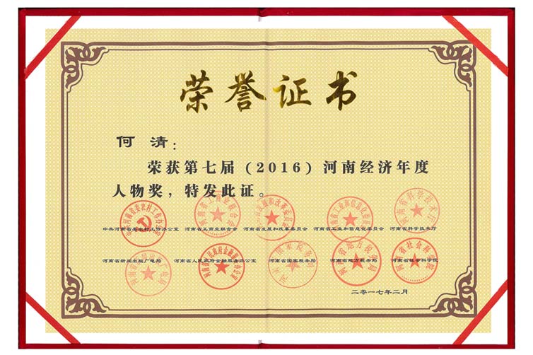 熱烈慶祝公司董事長(zhǎng)書(shū)記何清先生榮獲 第七屆(2016)"河南經(jīng)濟(jì)年度人物"